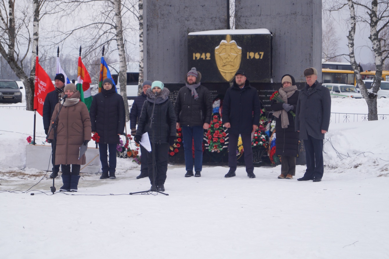 В нем приняли участие глава администрации Думиничского района Сергей Булыгин, депутат Законодательного Собрания Насрула Омарасхабов, племянница одного из погибших бойцов Александра Боева – Лилия Чекстер, действующие сотрудники и ветераны ФСБ, курсанты спецучилища, волонтёры Победы, юнармейцы, «молодогвардейцы», учащиеся и педагоги образовательных учреждений, местные жители. Приехала большая делегация Московской школы № 2090 имени Героя Советского Союза Лазаря Хаймовича Паперника.