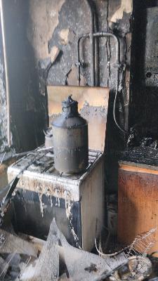 По вызову на место происшествие прибыли девять пожарных на двсух машинах. Огонь был ликвидирован, пострадал один человек. Его состояние здоровья не уточняется.