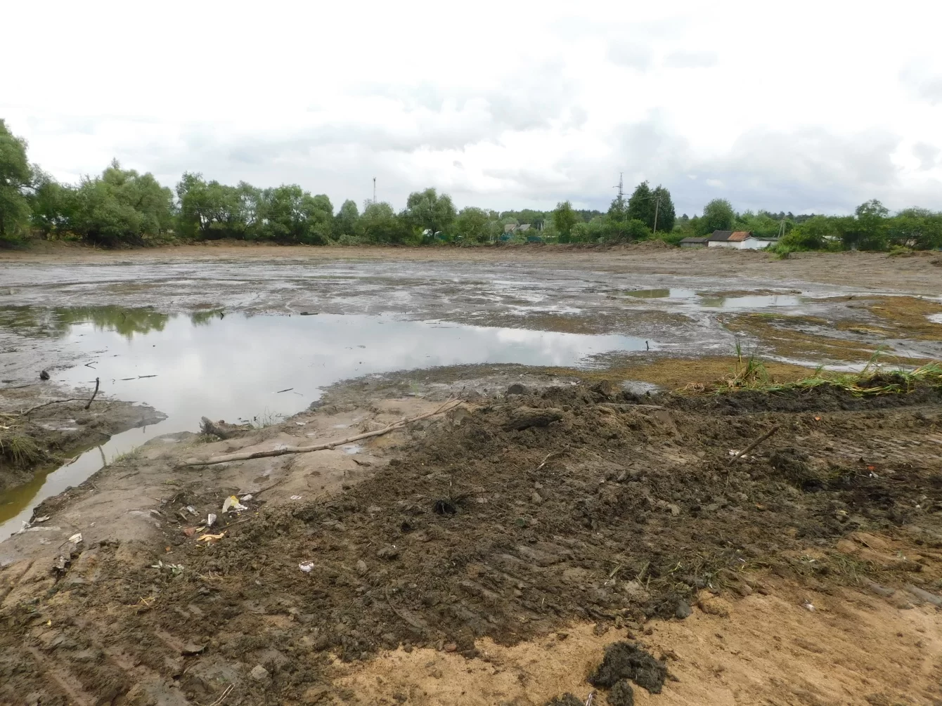 С июня начали спускать из пруда воду. Рабочие начали убирать с берега старые деревья, заросли кустарника. После того как сошла вода, приступили к очистке дна водоема от ила и мусора. В работе задействована тяжелая техника: болотный бульдозер, фронтальный погрузчик, самосвал.