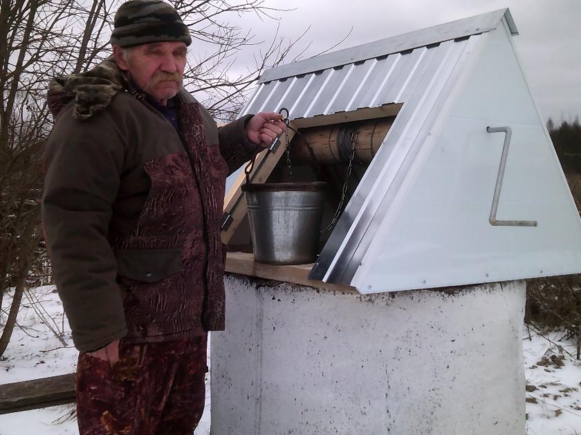 Жители деревни обратились в местную администрацию с просьбой отремонтировать один из колодцев, расположенный на самом краю деревни. Необходимо было смонтировать удобный козырек с дверцей, отрегулировать вращение ворота, заштукатурить бетонным раствором соединения между бетонными кольцами, через которые в пору обильных дождей или весенних паводков просачивается вода с посторонними примесями. И самое главное – почистить колодец, освободив его дно от скопившихся отложений. Эти работы были выполнены.