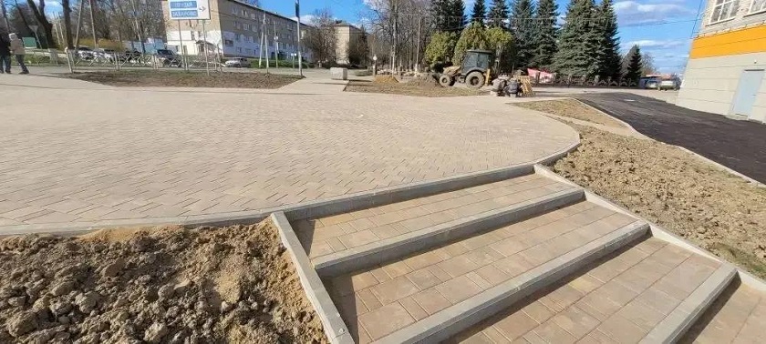 В центре села Детчино Малоярославецкого округа полным ходом идут работы по благоустройству общественной площадки в рамках федерального проекта «Формирование комфортной городской среды» (ФГКС).