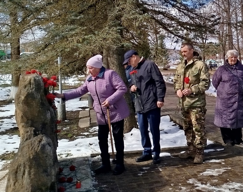 Участники мероприятия почтили минутой молчания память о жертвах фашистских концлагерей и о всех наших людях, чьи жизни унесла война, и возложили красные гвоздики к мемориальному знаку.