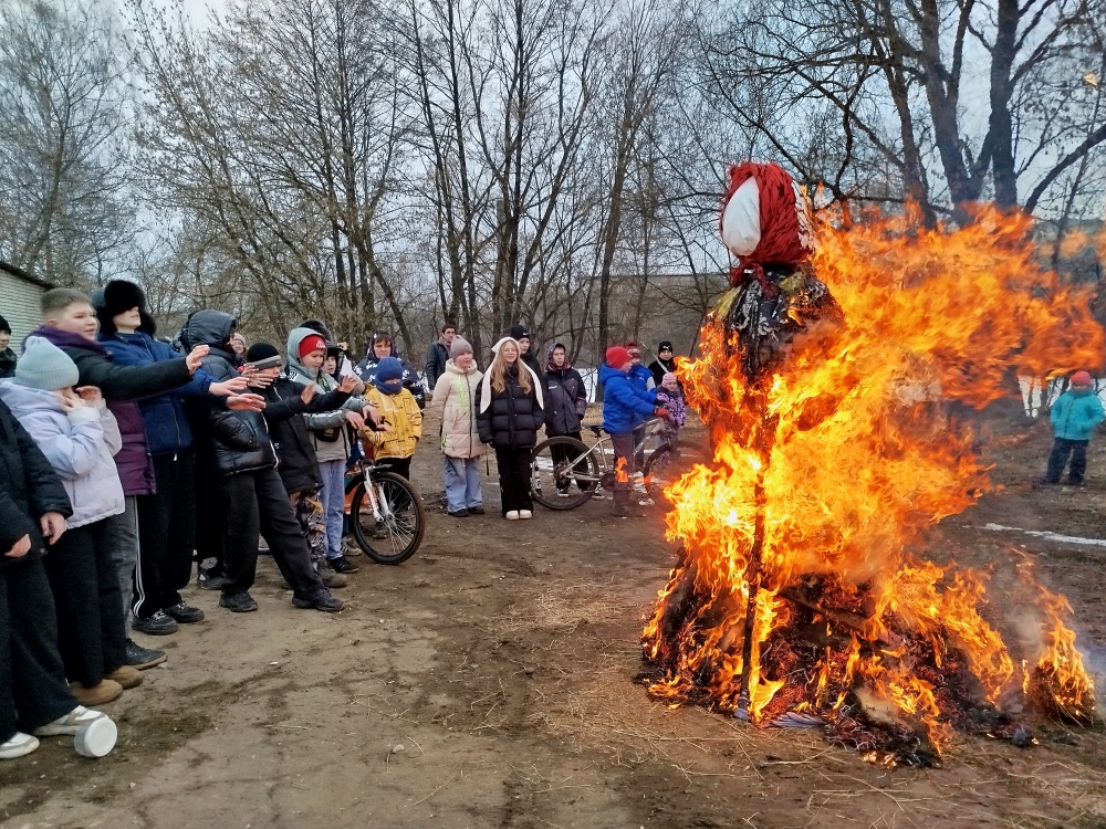 В завершение праздника под песню «Гори, гори ясно, чтобы не погасло!» сожгли чучело Масленицы.