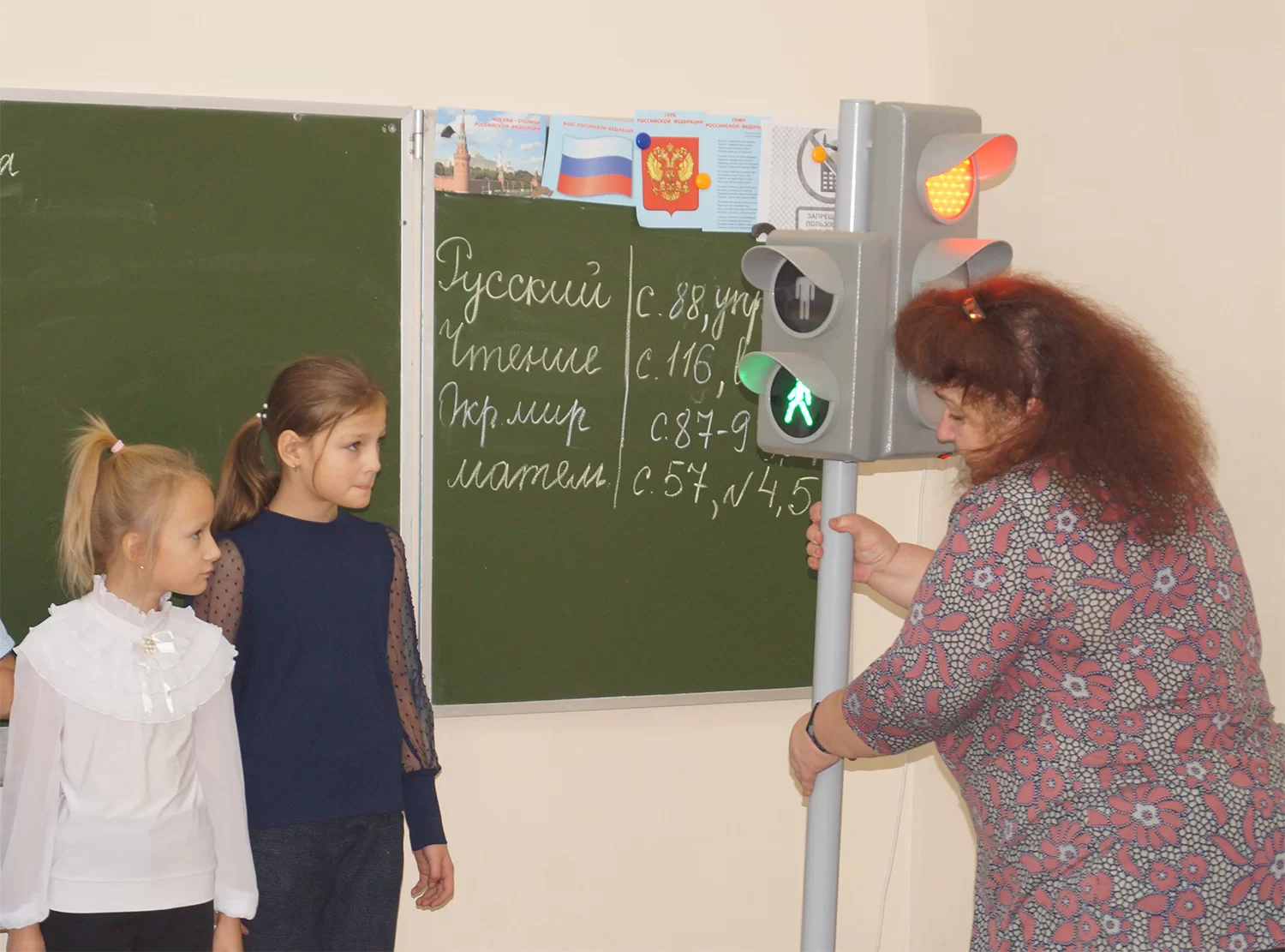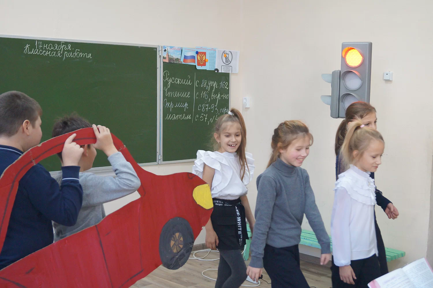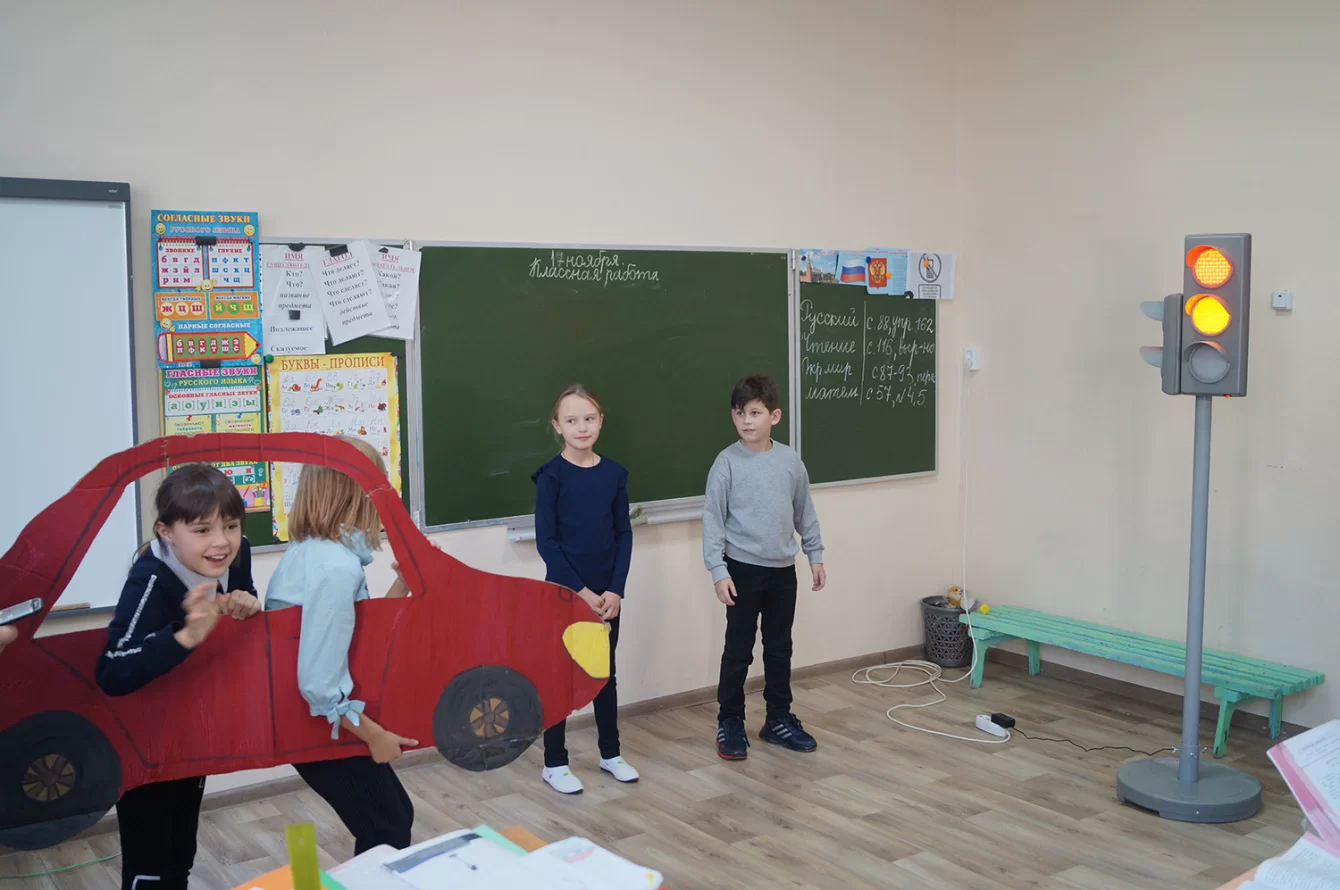 В классе, где мы общались, я сразу заметил вовсе не игрушечный светофор. А вот плакаты с дорожными знаками и другие наглядные пособия еще предстоит развесить. Зато дети рады новеньким велосипедам (5 штук), перчаткам, шлемам и прочим атрибутам, связанным с ездой на них. В школе это направление называют «Безопасным колесом». Разумеется, сейчас изучается теоретическая часть, а «кататься» будут в мае.