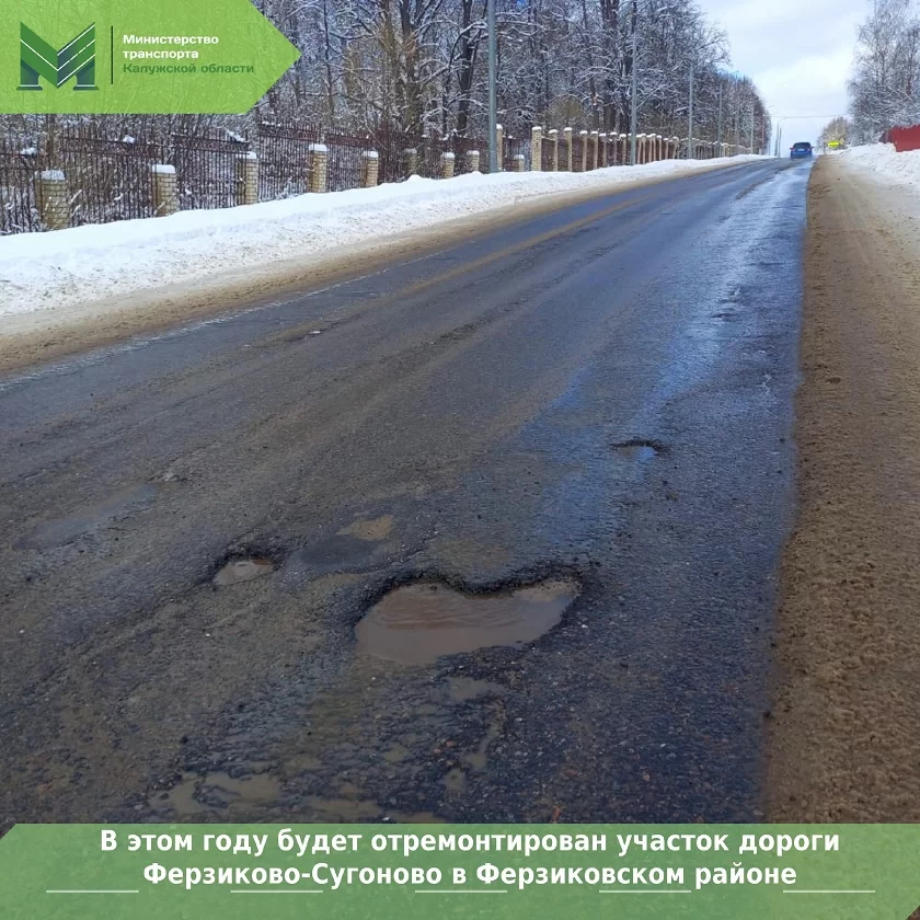 По информации регионального минтранса, ремонтные работы будут проходить на участке дороги от кольца на дороге из Калуги в Тарусу в месте поворота на райцентр до здания почты по улице Карпова в посёлке Ферзиково. На данный момент уже выбран подрядчик, который будет ответственен за восстановление дорожного полотна до нормативного состояния. Увидеть результат его работы местные жители смогут уже в августе.