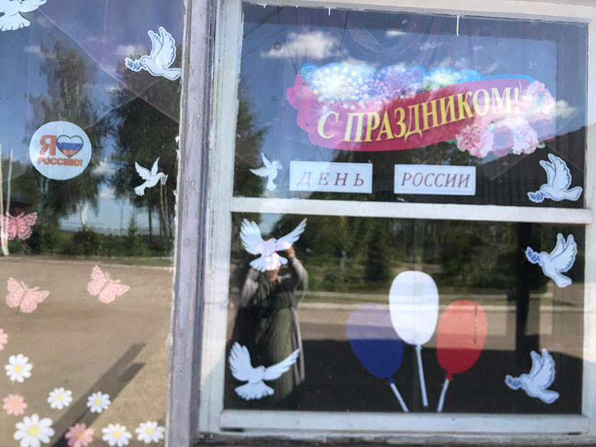 К участию в акции подошли не банально: оформляли окна теми символами, которые у участников ассоциируются с Россией. Например, часто можно было увидеть триколор, веточки березы, букеты из ромашек, медведей, самовары и баранки.