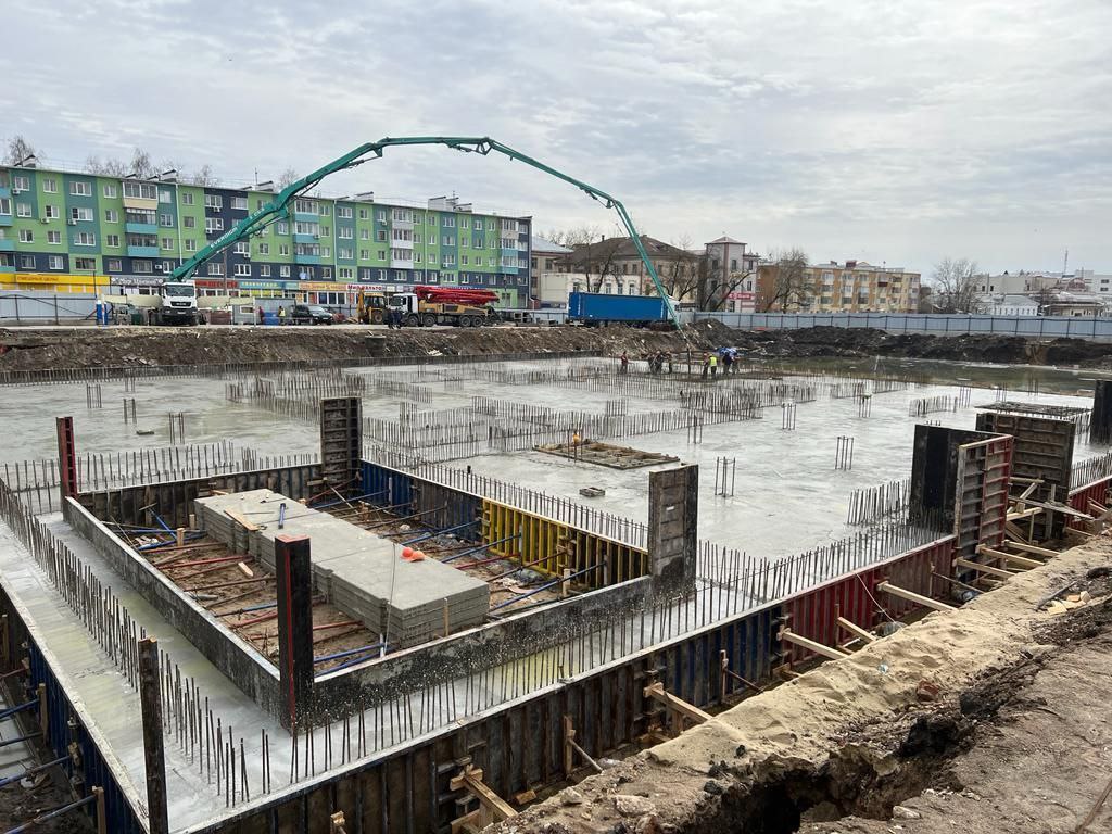 Для работ на фундаменте Калужского ТЮЗа применили технологию массовой беспрерывной заливки бетона. Весь материал произвели на двух калужских заводах - «Виталан» и «Раствор».