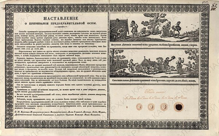 Медицинским советом Министерства внутренних дел России было издано «Наставление простому народу, как предохранять себя от холеры и лечить занемогших сею болезнею в местах, где нет ни лекарей, ни аптек». Печатное издание было разослано по уездам губернии. Его можно увидеть на выставке.