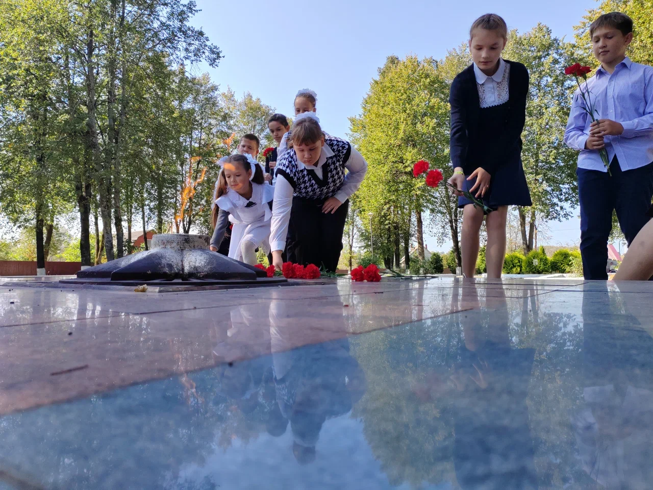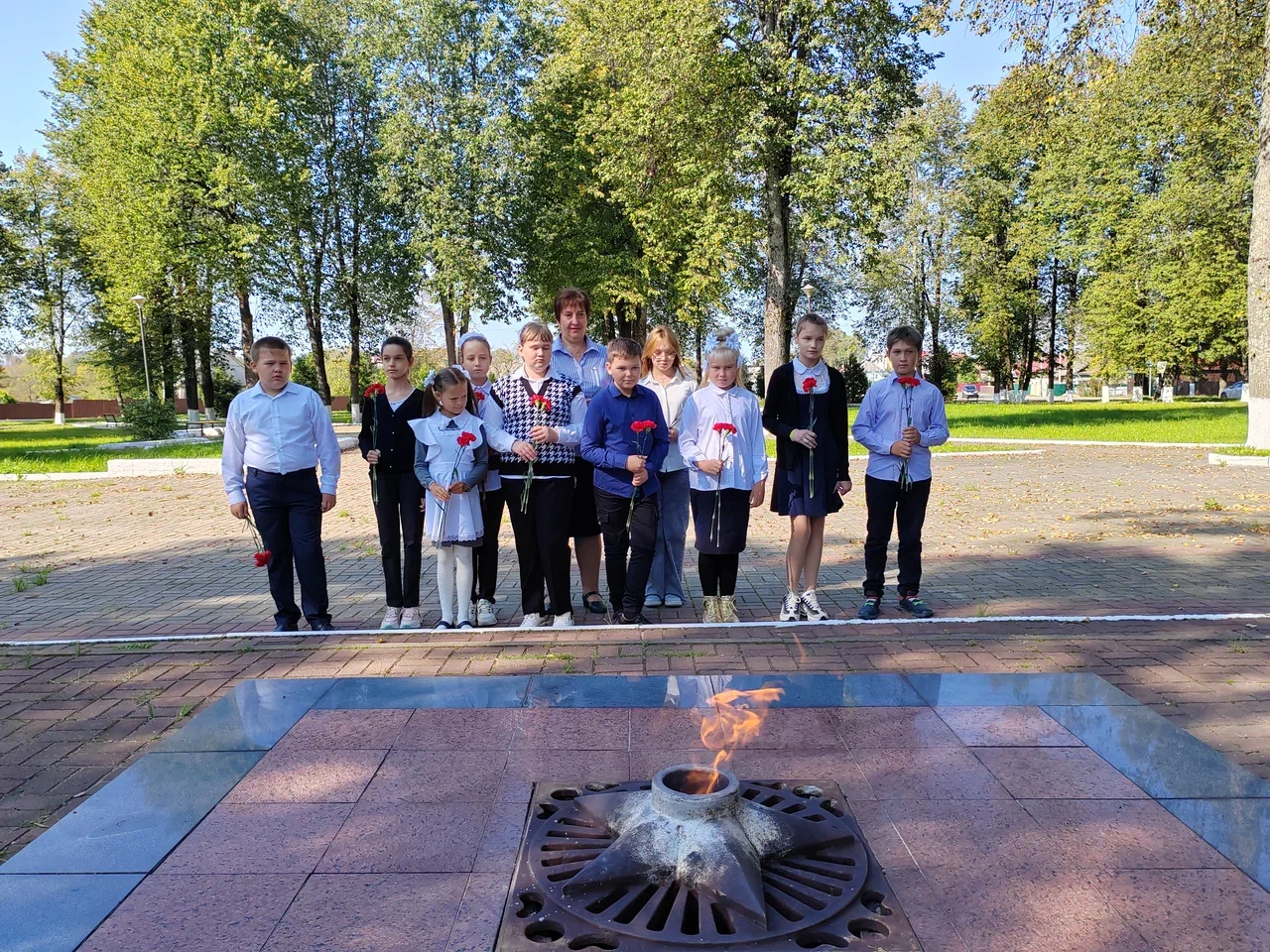 На них жители Извольска, взрослые и дети, вместе с главой администрации Износковского района Владимиром Леоновым почтили память всех погибших в годы Великой Отечественной войны Защитников Отечества, возложили цветы к памятнику земляка – Дмитрия Сергеевича Потапова и к Вечному Огню.