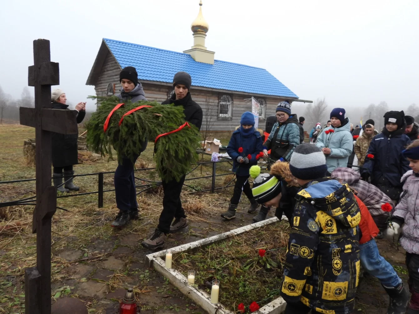 По традиции перед началом соревнований у братского захоронения, в котором покоится 92 бойца лыжного батальона, состоялся памятный митинг. Настоятель Износковского храма отслужил литию по усопшим, а все собравшиеся почтили их память минутой молчания и возложили цветы к могиле.