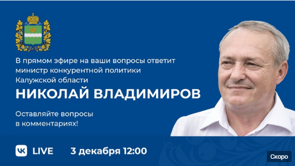 После основной темы, министр ответит на вопросы калужан, которые можно будет задать во время самой трансляции.