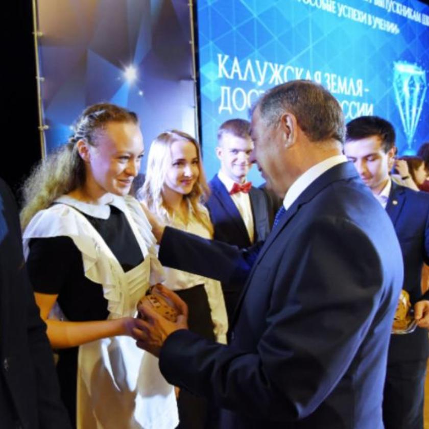 В этот день в зале областной администрации состоялось торжественное мероприятие, где собрались вчерашние школьники, директора учебных заведений, учителя и родители медалистов. На праздничной церемонии прозвучали поздравления от губернатора Калужской области Анатолия Артамонова и регионального министра образования и науки Александра Аникеева.