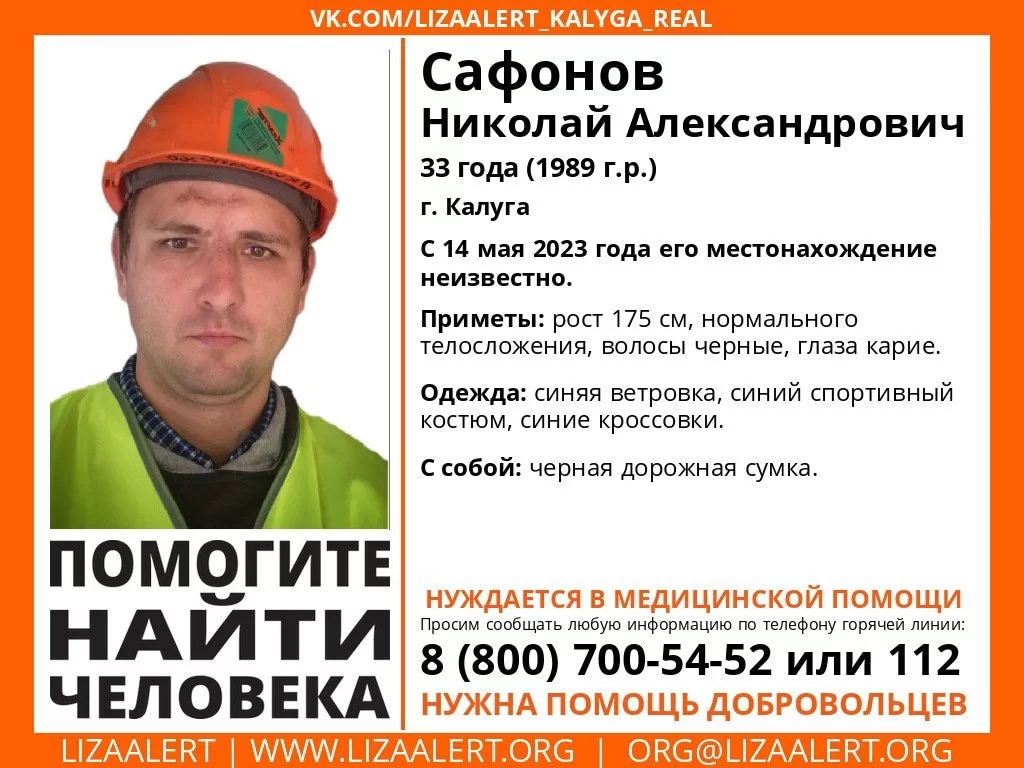 Калужанин в день пропажи был одет в синюю ветровку, такого же цвета спортивный костюм и кроссовки. С собой у Николая была черная дорожная сумка.