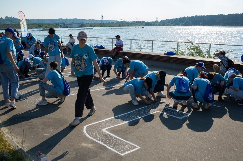 Праздник начался с флешмоба, в рамках которого волонтёры Калуги создали вдоль набережной огромную надпись на асфальте «Молодёжь40».