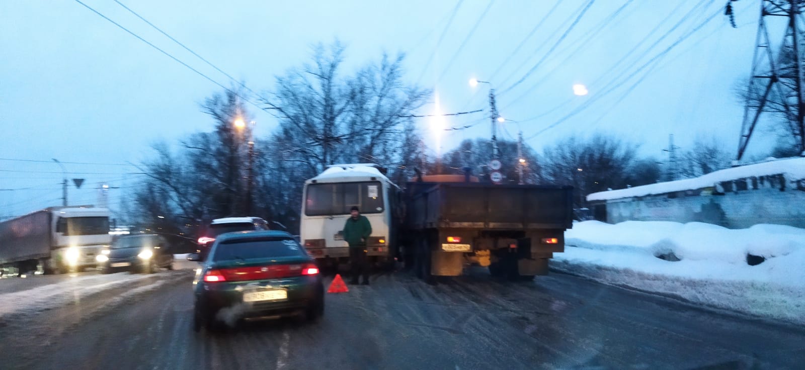 Об инциденте нам сообщил наш подписчик, который и стал одним из очевидцев и «заложников» затора. По фото с места аварии видно, что дорогу не поделили два больших транспортных средства – пассажирский ПАЗик и КАМАЗ.