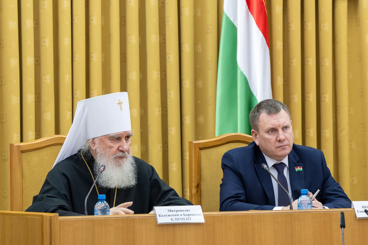 «» «Сегодня все более актуален запрос на сохранение семейных и духовно-нравственных ценностей. Он успешно решается благодаря сотрудничеству правительства региона с Калужской епархией», - отметила Ирина Анатольевна.Депутат областного парламента Павел Гранков расставил акценты духовно-нравственного развития молодёжи в условиях вызовов времени. Настоятель Никольского храма в Мосальске, проповедник, блогер и миссионер Владислав Береговой ответил на вопрос, для чего учителю, преподающему в школах «Основы православной культуры», необходим священник. Депутат Законодательного Собрания, ветеран спецоперации Артур Титов уверен, что воспитание станет более эффективным, если его строить на примерах подвигов участников СВО.