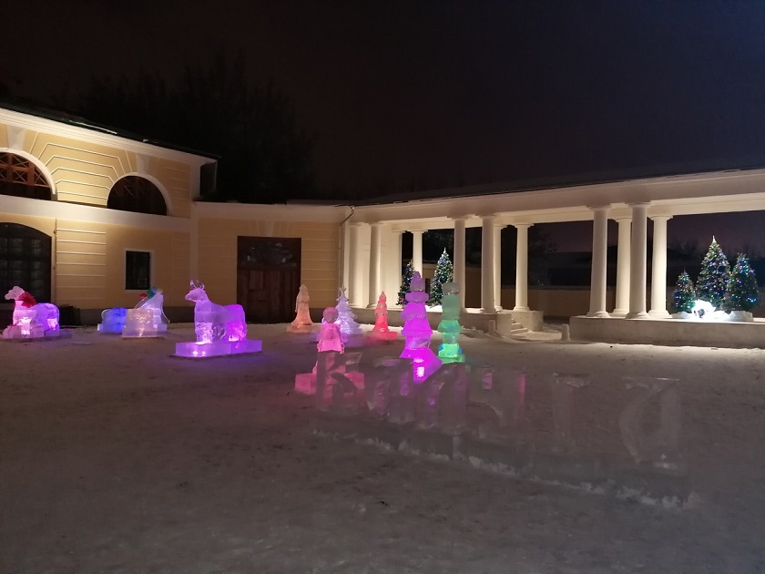 Открытие выставки ледяных фигур состоится 25 декабря в 14:00 во дворе музейно-краеведческого комплекса «Усадьба Золотарёвых» Калужского объединённого музея-заповедника. Но калужане могут посмотреть на фигуры уже сейчас: здесь и ёлка, и Дед Мороз, и ларец с подарками, и символ нового года – бык.