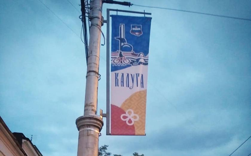 На столбах вдоль центральных улицы в областном центре начали вывешивать праздничные пилоны с символикой юбилея Калуги.