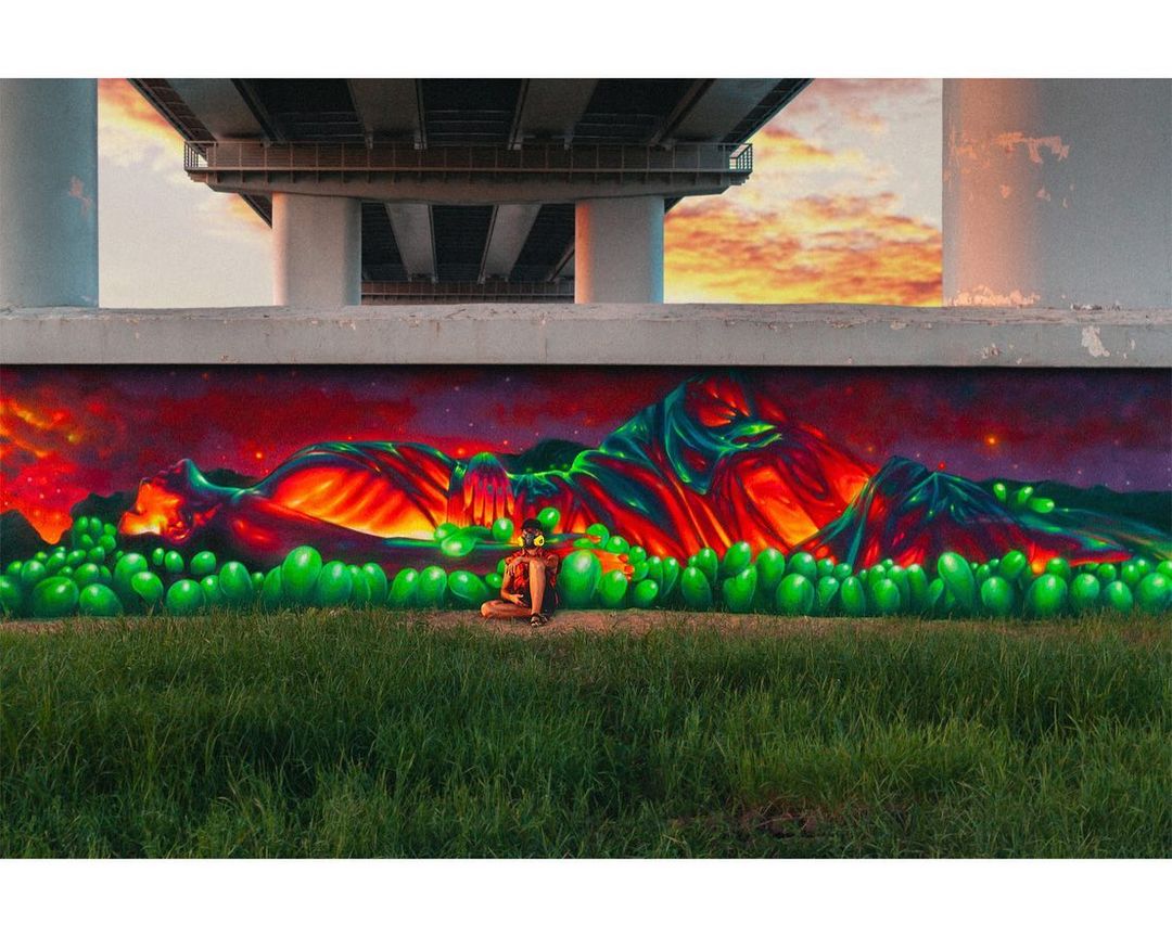 За это время художнику удалось создать сразу несколько работ. В том числе – большие работы по разрисовке фундамента моста и несколько маленьких – на опорах. Уличным искусством калужане могут любоваться в любое время. А посмотреть действительно есть на что. Опоры после рук мастера стали похожи на пружины и кольца с пламенем, а фундамент на портал в другие измерения.