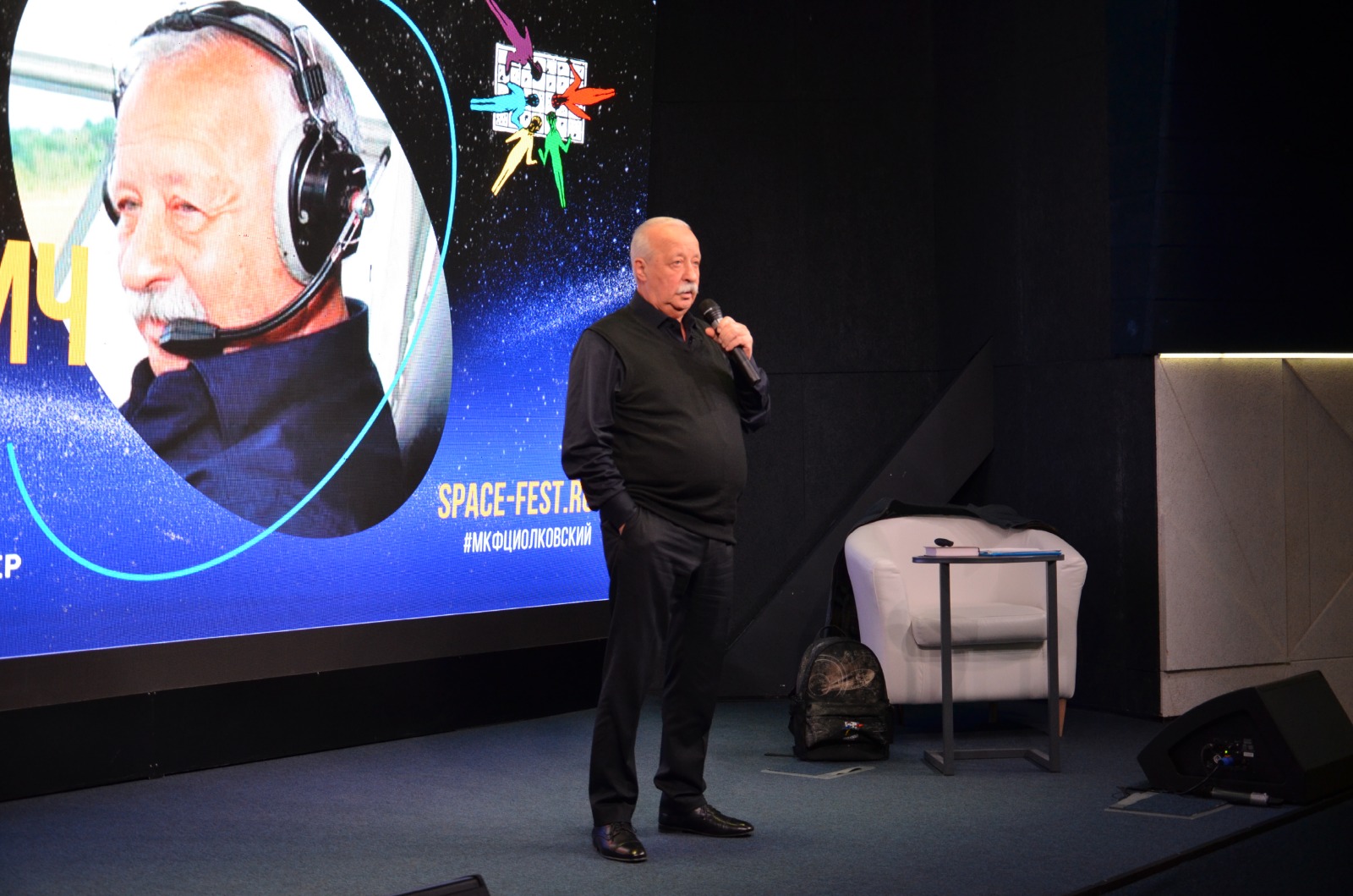 В своём выступлении народный артист Российской Федерации рассказал о воздухоплавании и авиации, а также вспомнил времена обучения в Калужском авиационном училище, дополнив их красочными историями.