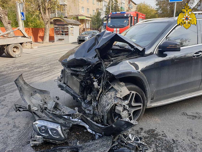 Судя по предварительным данным, автомобиль Мерседес не уступил дорогу поливальной машине МАЗ, которая ехала по ул. Королева со стороны музея космонавтики. Очевидно, владелец Мерседеса решил, что успеет проскочить – на этом перекрестке ул. Королева – главная. Но грузовик оказался железнее. Мерседес практически уничтожен. Для его транспортировки понадобился эвакуатор.