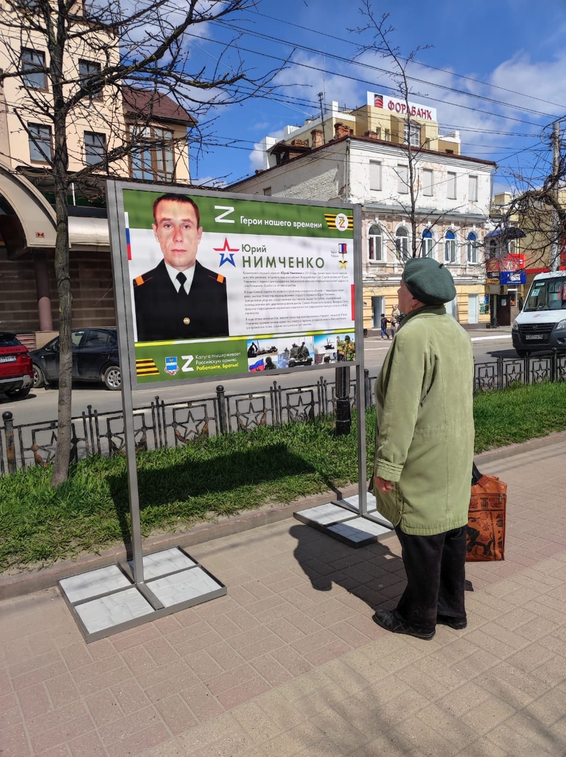 Аллея с портретами и описанием подвигов героев, защищающих Донбасс, появилась в преддверии Дня Победы в центре Калуги. На пешеходном бульваре улицы Кирова расположились 13 стендов.