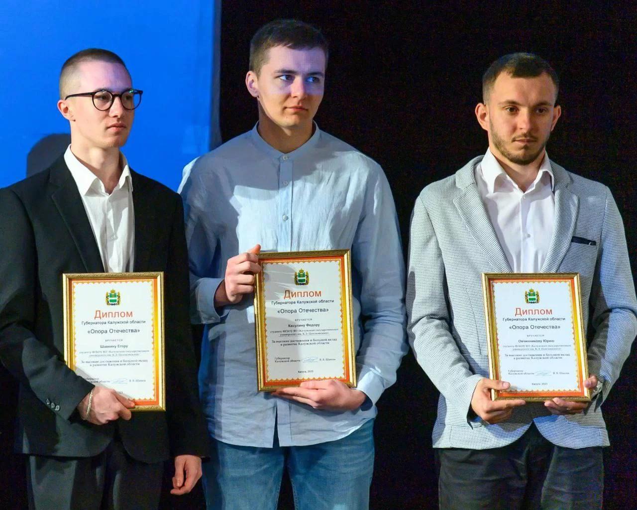 Так, например, диплом «Опора Отечества» получили студенты-медики КГУ им. К.Э. Циолковского, которые вызвались помогать врачам в военном госпитале в Луганске. Егор Шавкин, Федор Касулин и Юрий Овчинников работали на операциях, в реанимационном отделении.