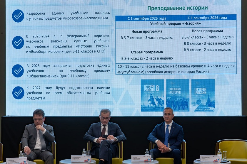 «» «С 2023-24 года в наш образовательный процесс постепенно вводится новая единая федеральная линейка учебников государственной истории. Это важнейший шаг в гуманитарной государственной политике нашей страны. Следующий логичный шаг – непростая, но крайне важная для нас для всех задача создания линейки государственных учебников по региональной истории. Каждый регион нашей страны самобытен, богат столетними традициями, мифологией в лучшем смысле. Очень важно, несмотря на это, позаботиться о том, чтобы история региона не противоречила, а дополняла и конкретизировала общую картину мира, изложенную в федеральных учебниках. Это важнейшая политическая задача», - сказал на открытии начальник Управления Президента Российской Федерации по государственной политике в гуманитарной сфере Владимир Бочарников.