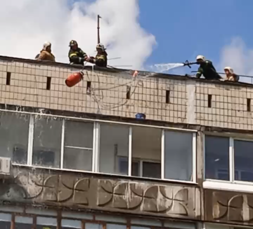 Как сообщили нашему изданию очевидцы, при ремонте крыши дома у рабочих вспыхнул газовый баллон и горящим упал на крышу балкона на 9 этаже. Сейчас на место прибыли три пожарных расчета и скорая помощь.