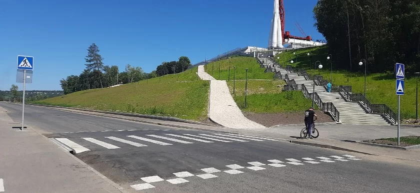 Не так давно на этом месте появилась искусственная неровность, совмещённая с пешеходным переходом, теперь же, по плану, на неё нанесли горизонтальную дорожную разметку, чтобы гости набережной могли безопасно пересекать дорогу.