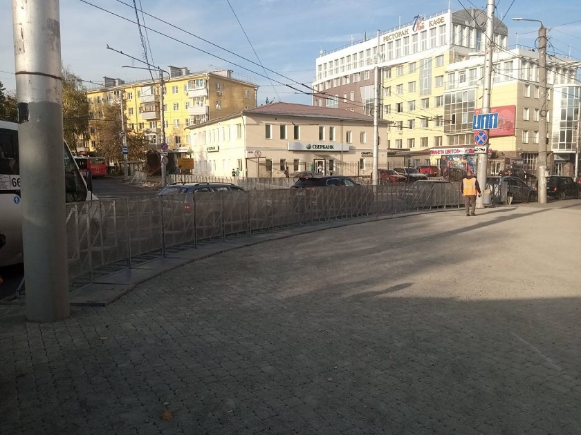 Временное ограждение установили на месте бывшего аварийноопасного пешеходного перехода через улицу Маршала Жукова.
