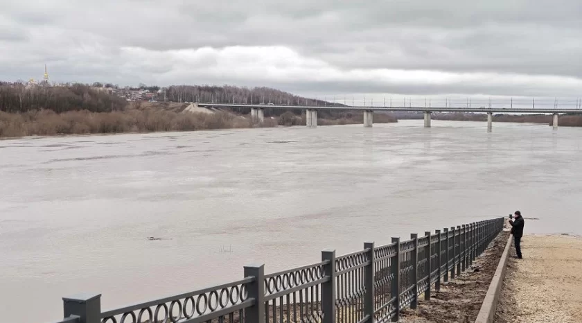 Накануне, 4 апреля, «выглянула» из воды нижняя часть набережной Оки в областном центре. Паводок оставил после себя грязь на дорожках и мусор, который прибило к склону.