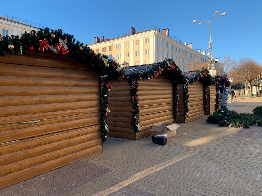 На площади перед театром поставили деревянные киоски, в которых будут продавать новогодние подарки и сладости. Не забыли и про туристов. Для них обозначили информационную точку напротив драмтеатра. Практически на каждом углу города калужане трудятся, чтобы успеть украсить всё до приезда гостей в выходные. На дамбе на въезде в город установили светящийся стенд с надписью "Добро пожаловать в Новогоднюю столицу России!".