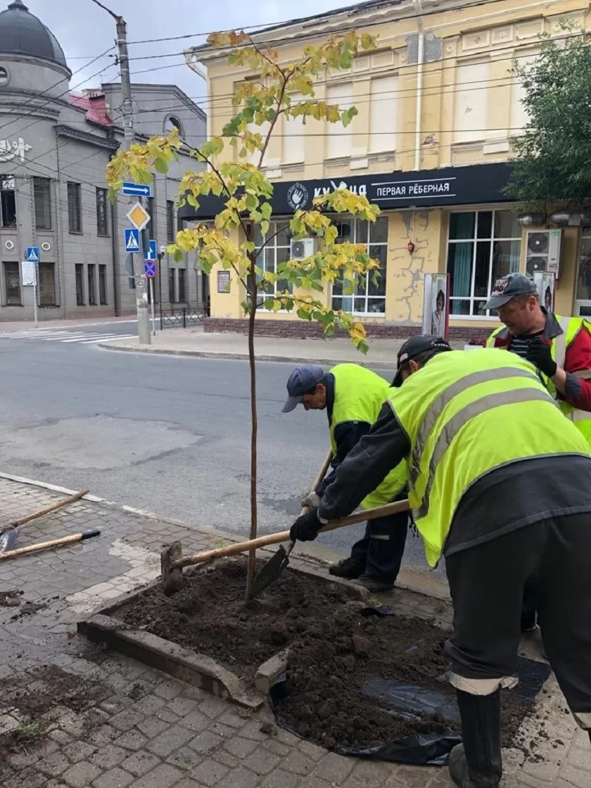 Всего в начала года в областной столице высажено 97 деревьев. Работы по озеленению города продолжаются.