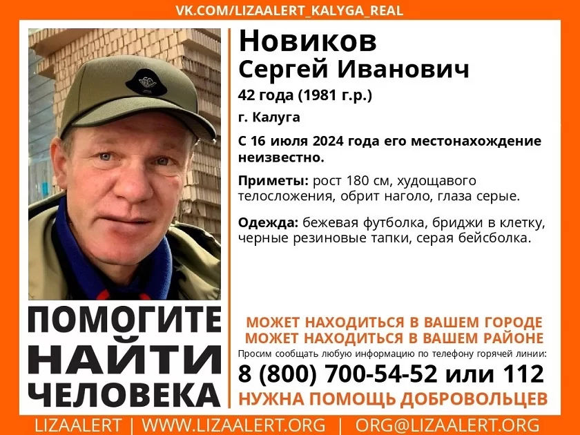 Рост пропавшего составляет 180 сантиметров, телосложение у него худощавое, глаза серые, голова обрита наголо. На мужчине были бежевая футболка и бриджи в клетку. На ногах – черные резиновые тапки, на голове - серая бейсболка.