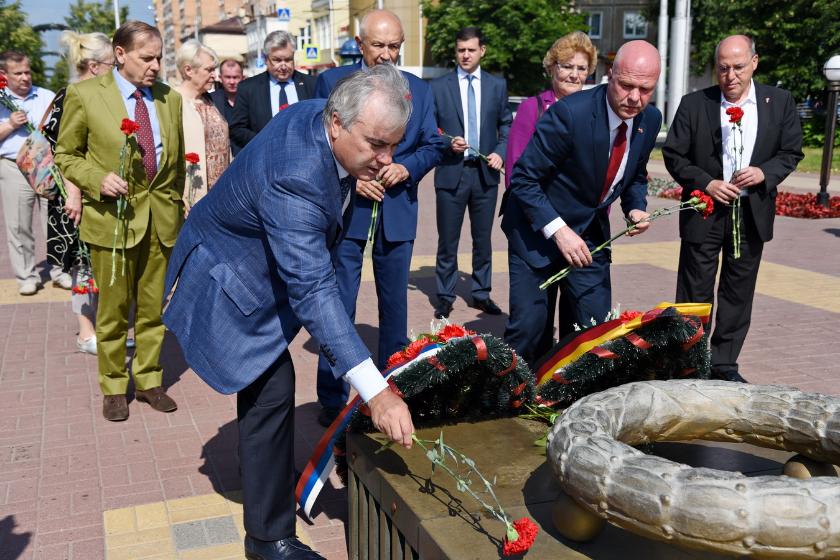 - Очень важно, что мы сейчас вносим свой вклад и возлагаем цветы на этом мемориале. Это часть программы посещения Москвы и Калуги, в рамках которой в Трептов-парке - (примечание: мемориал советским солдатам в Берлине) состоялось возложение венков. Это символично. Это важно для молодого поколения, чтобы они знали, что такое страдание и помнили историю.