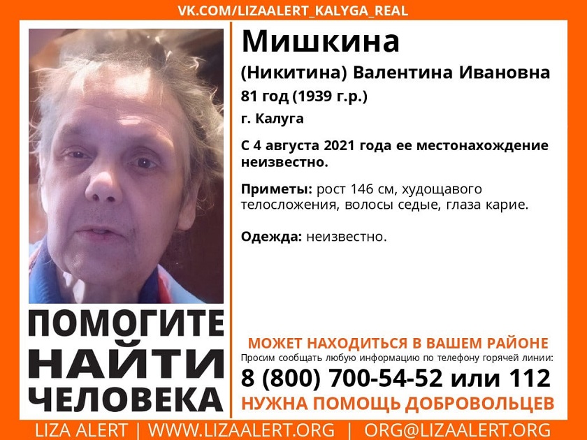 Как сообщают добровольцы, пенсионерка ушла из дома еще 4 августа и с тех пор ее местоположение никому неизвестно.