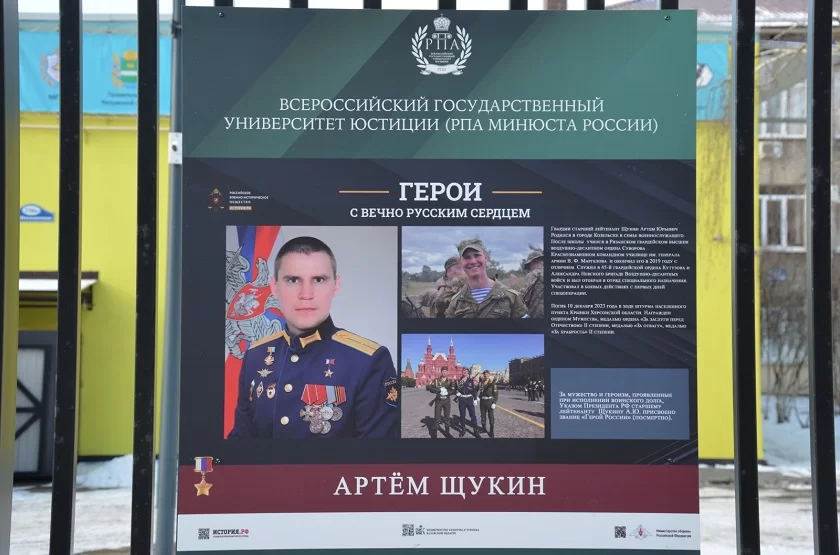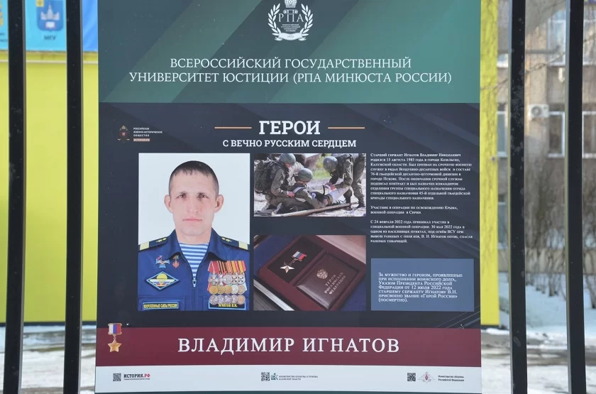 «Наш головной вуз развил идею Российского военно-исторического общества и ретранслировал ее на все филиалы. Было решено в каждом городе, где есть филиал, открыть подобную выставку. Но мы внесли в нее региональный компонент – добавили пять баннеров, посвященных героям-калужанам, в том числе троим участникам СВО, погибшим при защите своей Родины», - рассказал Роман Федосеев.