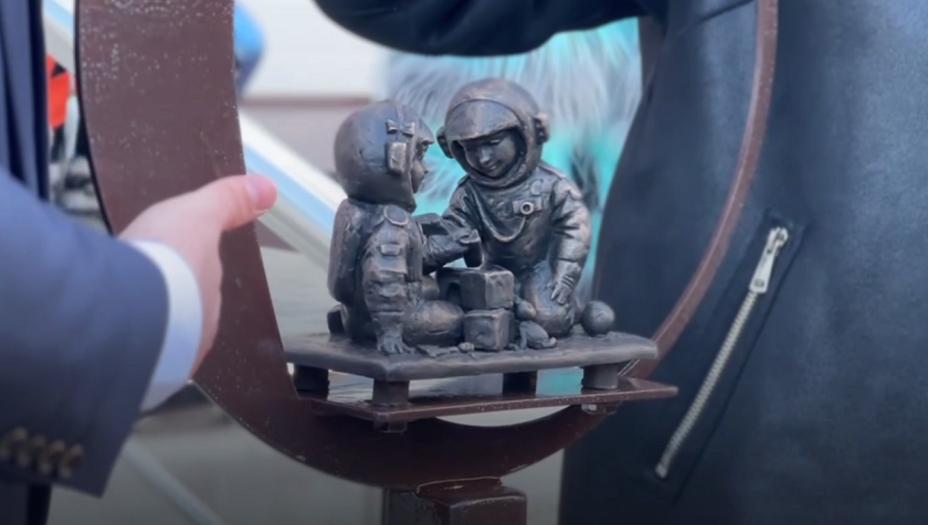 Скульптура расположена у входа в семейный центр «Планета Калуга», сообщают в телеграм-канале «Космонавтики Калуга». Она представляет собой композицию из двух фигур космонавтиков по имени Юрий и Валентина, которые увлечены детскими играми и мечтами. Космонавтики символизируют решимость и смелость, а также призваны вдохновить каждого ребенка на веру в себя, свои силы и мечты.