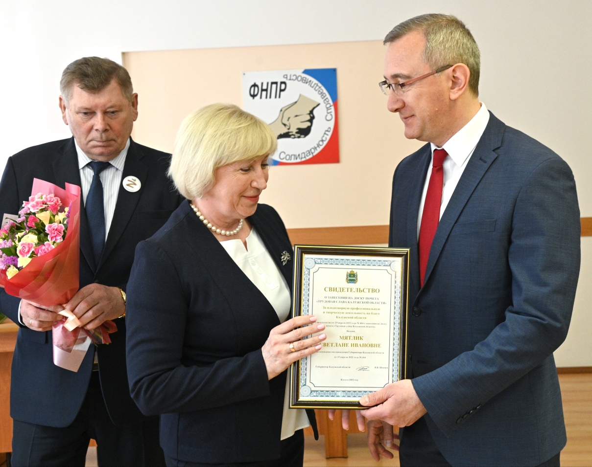 Свидетельства о внесении на Доску почета получили 30 жителей Калуги и области. Это представители самых разных профессий – врачи, работники сельского хозяйства, сферы образования, рабочие разных специальностей и другие отличившиеся в своей сфере. Свидетельства вручил глава региона Владислав Шапша.