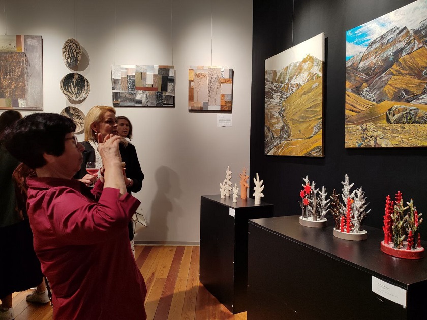 Затем общение продолжилось в выставочном зале, где среди работ, представляющих, разные планеты и их обитателей, звучал ностальгический хит группы «Земляне» «Трава у дома» и другая космическая музыка.
