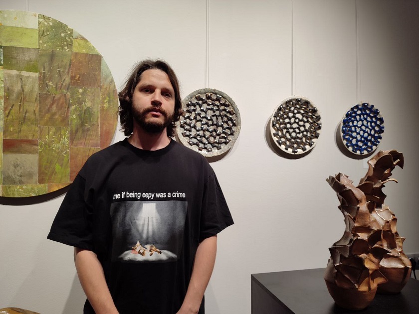 «» «В этом фестивале я участвую не первый раз. Сейчас представляю интерьерные декоративные тарелки, выполненные в разных техниках. В них присутствует как абстракция, открытая для интерпретации, так и космическая тема. Я люблю эксперименты с разными материалами, их взаимодействием, классику и что-то совсем не свойственное керамике» - поделился участник фестиваля Федор Стуков, выпускник областного колледжа культуры и искусств.
