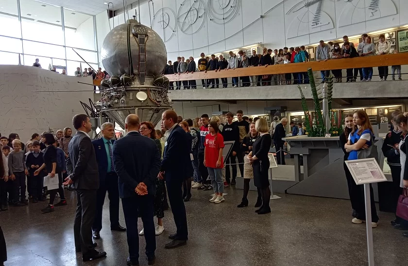 В зале Музея истории космонавтики им. Циолковского собралась молодёжь - от самых младших школьников до выпускников, и все они увлечены техническим творчеством и робототехникой. Их приветствовали директор музея Наталья Абакумова, заместитель губернатора Дмитрий Разумовский, лётчик-космонавт Андрей Борисенко, главный конструктор КФ НПО им. Лавочкина Артём Артемьев, директор Центра «Созвездие» Светлана Милютина.