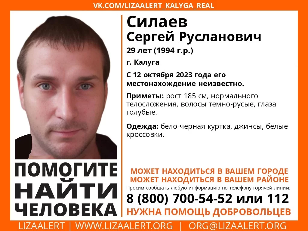 Добровольцы отряда просят калужан помочь в поисках мужчины. Сообщить любую информацию о местоположении Сергея Силаева можно по телефонам горячей линии отряда 8 800 700-54-52 или 112.
