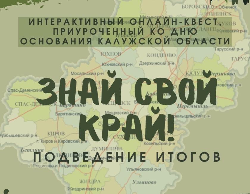 Организаторы интерактивного онлайн-квеста «Знай свой край» выражают благодарность всем участникам за проявленные знания и надеются, что в дальнейшем они проявят такой же интерес в других мероприятиях.