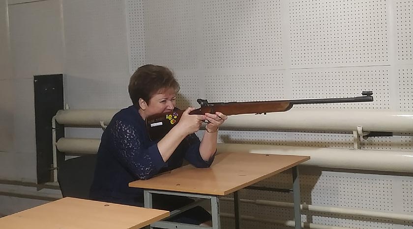 Свои силы в стрельбе попробовала и председатель Общественной палаты Галина Донченкова. Она также поделилась своими мыслями по поводу предстоящего праздника: