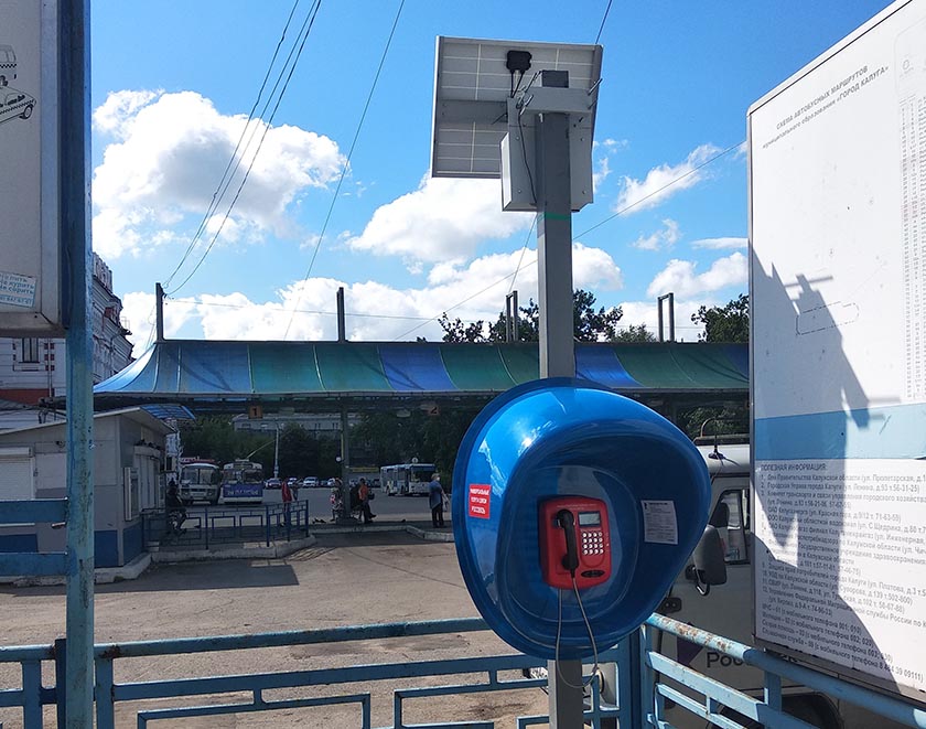 Над телефонной кабиной, которая стоит в районе двух калужских вокзалов, появились солнечные батареи. Они должны обеспечить постоянную и бесперебойную работы таксофона.