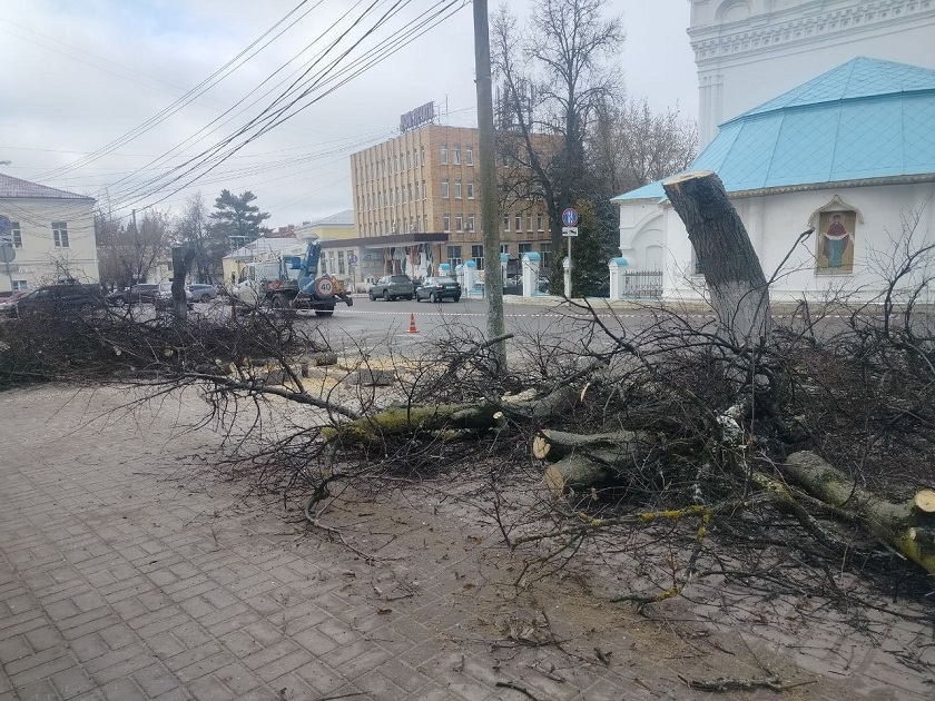 Сегодня работы проводились по улице Марата на участке от улицы Карпова до улицы Кропоткина. Пять ликвидированных деревьев имели признаки усыхания и столовую гниль.