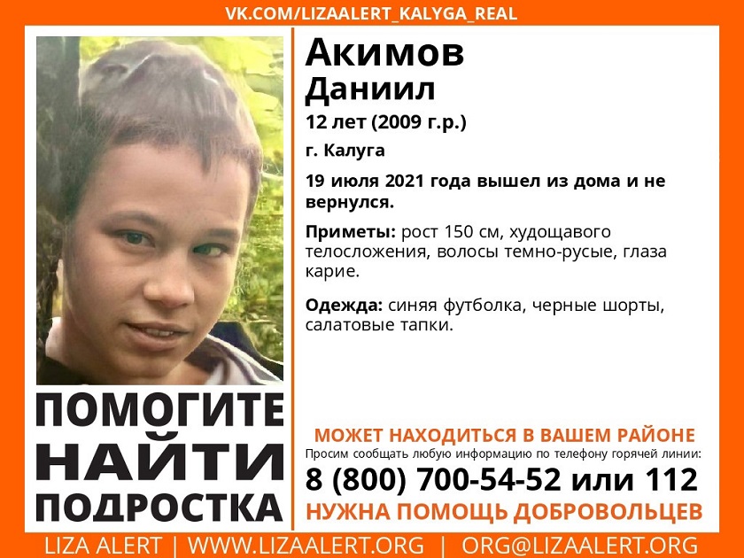 Отряд «Лиза Алерт» просит сообщать любую информацию о Данииле Акимове по телефону горячей линии 8-800-700-54-52, инфоргу Ольге, 8-920-611-71-15, или инфоргу Лилии, 8-920-891-81-54. Подросток может находиться в вашем районе!