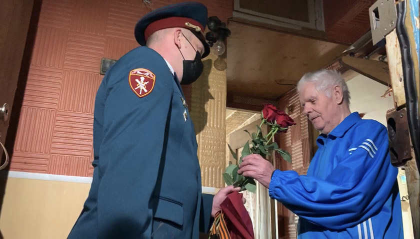 Заместитель регионального Управления Росгвардии полковник Роман Мартынов вручил ветерану цветы и памятный подарок.